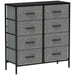 Home storage with this HOMCOM fabric chest of drawers. The eight fabric drawers offer room for lots of things - keep t-shirts, tops, bottoms and more organised. The large space also makes it suitable for shared use. The wood-effect top offers more room: a great place to display your favourite photos. The steel frame makes a strong core, with adjustable feet for balance. Comes with anti-tipping straps for safety. Use all over the home and office.