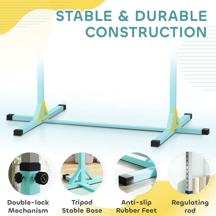 Let them practise till perfect at home with this children's gymnastic bar from HOMCOM. The height can be adjusted to 13 different levels between 92cm and 150cm, allowing you to set it to a comfortable height, with the frame constructed from powder coated steel for a solid structure which is safe and stable. On the bottom a thick pink coloured base sits, with the ends in a 'T' formation which keeps the balance. The perfect companion for those flips, balances, spins and more.