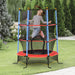 Bounce all day – this HOMCOM trampoline keeps kids happy and active. Made with powder-coated steel, it's a robust formation, staying in shape when in use. Surrounded with a safety net and padded poles, they will not fall off as they play. There aren't any springs included, so children are less likely to hurt themselves when jumping up and down. It's easy to carry and move – set up anywhere and let the fun begin. Suitable for indoors and outdoors.