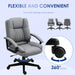 This HOMCOM office chair is a great addition to any home office. A comfy chair: filled with foam padding, with a high back, fixed armrests and adjustable height for support. Five 360° wheels allow this chair to be moved around easily, whenever, complete with a swivel seat which moves in motion with your body.