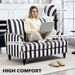 Sink into the plush comfort of the HOMCOM snuggle chair, a velvet-clad gem with a modern stripe design and chic turned legs. Its cushy high-density sponge makes it the cosiest spot in your living room or bedroom. With its extra-large seat and long armrests, this bedroom chair is the optimum nook for a relaxing retreat.