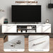 - SPACIOUS STORAGE: A large tabletop that can hold a TV up to 90". The TV table comes with two open shelves and two side cabinets for keeping media boxes, remote controls and displaying your favourite pieces.