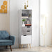 - Neutral look: White structure, with grey slate-effect drawers for a minimal look. Leave how it is, or dress up with colour - the choice is yours. This slim storage cabinet is also easy to blend with your current furniture.