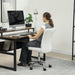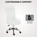 Upgrade your workspace with the HOMCOM home office chair. Wrapped in plush fabric for a stylish touch, it works great as a home office or vanity chair. A curved back and high-density sponge offer comfort and support, while the seat adjusts from 42–50cm and swivels 360° with ease. A sleek blend of form and function — suitable for study spaces or PC setups.
