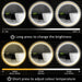 - Adjustable light: 168 LED beads emit backlit and front lit with adjustable brightness (10% to 100%) and three-colour temperatures (warm white/natural/cool white). The round mirror remembers last setting, button with white light when on and blue when off