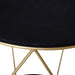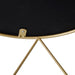 - Large round tabletop and round base are connected via the gold tone middle frame in a striking zig-zag design