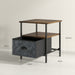 Industrial-style just stepped up: this set of 2 HOMCOM side table. A two-tone dark wood-effect design, paired with the matte black frame and grey drawer creates a striking and stand-out look, for a point of difference in the home. Comes with a bottom fabric drawers, an open shelf and a table top - plenty of handy storage space. The frame, made from metal, is robust, with adjustable feet to finish, so it always keeps balanced. Why not use as a bedside table?