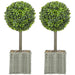 - Two-piece set of realistic boxwood topiary enhances home aesthetics