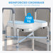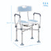 - Reinforced aluminium frame: Constructed of heavy-duty aluminium and HDPE with reinforced crossbars under the seats, this bath chair supports a weight capacity of 150kg. Additionally, the lightweight material and handle on the back make it more portable.
