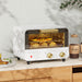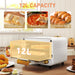 - Compact and versatile: This compact toaster oven is suitable for small kitchens, 12L volume, comfortably fitting an 8-inch pizza or four slices of bread, enhancing your cooking options without occupying too much space.