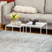 Discover HOMCOM's chic coffee table set, where functionality meets contemporary style. Suitable for displaying photos, books, or snacks, these two versatile side tables nest together to save space. Featuring a robust steel frame and sleek square design, this set adds a sophisticated touch to any living space. Elevate your home with this stylish, space-saving essential.