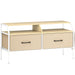 - Spacious & versatile storage: Features 2 deep foldable fabric drawers, 2 open compartments and 5 side pockets - great for organising router, books, media devices, remote controls and everyday essentials all in a stylish tv cabinet.