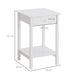 Bring elegance into your home décor with this sleek and stylish side table from HOMCOM. In a fresh white finish, it features a spacious drawer with handle and a bottom shelf, making it perfect for storage and organisation in your bedroom, kitchen, living room or hallway. Crafted into a spacious, yet compact design, it is ideal for smaller areas of the home and its smooth surface allows it to be cleaned easy. A smart and fresh piece of furniture for every home.