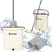 Our mop set comes with an advanced bucket featuring a dual-chamber system that separates clean water from dirty water, ensuring you're always using fresh water to clean your floors. With an impressive 9-liter capacity and a convenient 6-liter section for soiled water, this system minimizes water waste and the need for constant refills. A simple pull plug mechanism allows for easy draining when you're done cleaning.