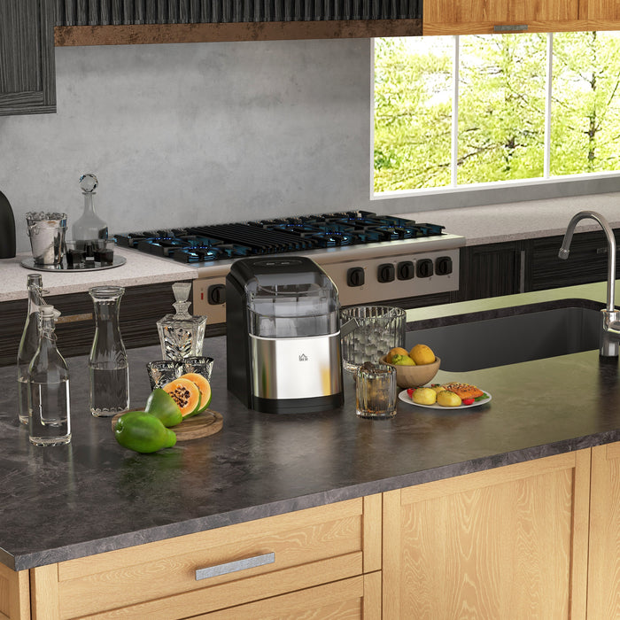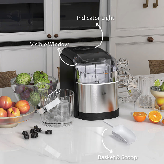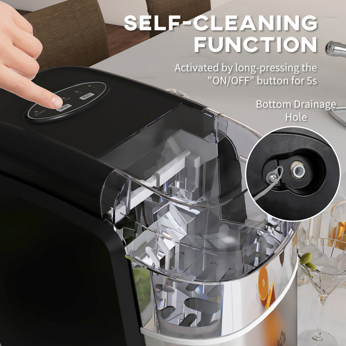 Countertop Ice Cube Maker - Fast 12kg/24hr Production, 9 Cubes in 6-12 Mins, 2 Sizes - Includes Scoop/Basket, Self-Clean Feature for Home, Kitchen, Party Use