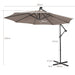 Bask in the shade of sophistication with our expansive 10 ft cantilever umbrella, designed to elevate your outdoor comfort experience. The perfect addition to your patio, this umbrella not only provides ample shade but also infuses your evenings with a warm glow, thanks to its integrated solar-powered LED lighting system.
