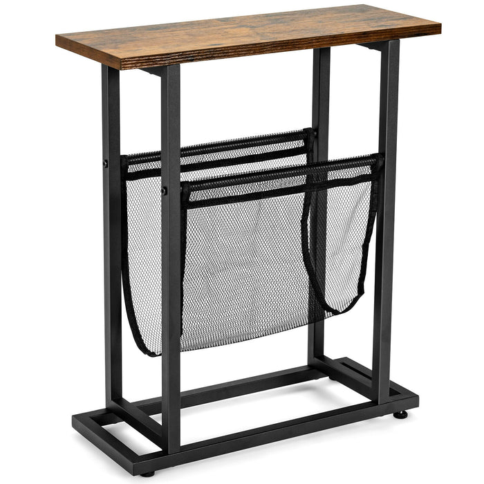 At first glance, you'll be immediately drawn to the cleverly designed mesh sling nestled beneath the table—a pristine spot for organizing reading materials, cozy throws, or the day's paper. The spacious tabletop serves as an ideal stage for showcasing a stylish lamp, your favorite beverages, or cherished ornaments, turning the table into a focal piece of your room's design.
