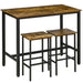 The ensemble boasts a chic industrial look, with a rich brown wood-effect finish on the tabletop and stool seats that lends a touch of nature's charm to your interiors. The contrast of dark metallic frames adds a dramatic flair, ensuring this dining set stands out as a focal point in any room.