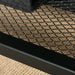 The integrated lower metallic shelf offers a convenient place to neatly store an array of items such as your latest reads, remote controls, or stylish baskets to contain knick-knacks, ensuring a tidy and inviting space.