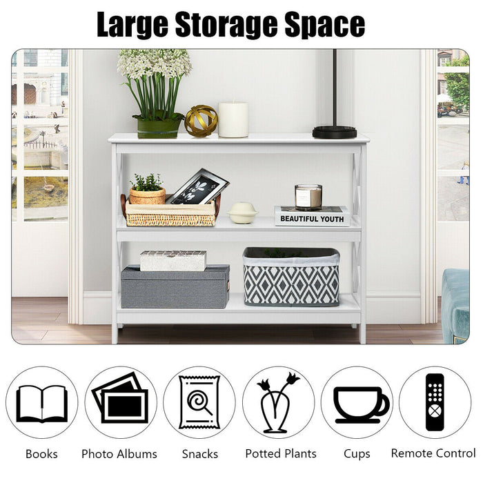 This console table isn't just for show - it comes with two open shelves beneath the wide tabletop, extending your storage space. Ideal for showcasing your books, displaying your favorite crafts, or giving your children's toys a new home. The spacious design allows you to organize and declutter, all while adding a touch of elegance to your space.