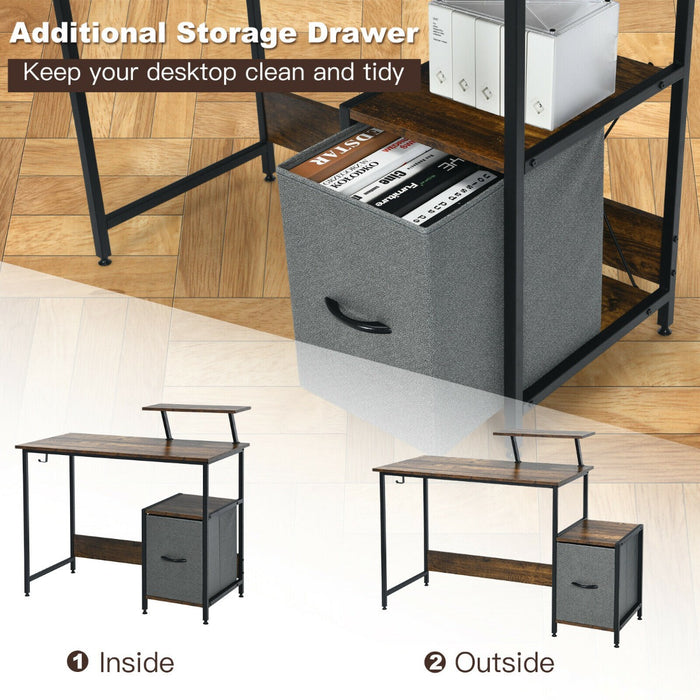 The desk’s elevated shelf not only elevates your monitor to the ideal eye-level but also provides extra space to tuck away small items. Consequently, this ergonomic feature can help reduce neck strain and eye fatigue during long work sessions. Additionally, a handy hook is at your disposal for hanging headphones or any accessory within arm's reach.