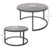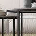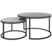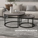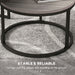 Crafted with sophistication in mind, each table flaunts a round, wood-effect surface, presenting a harmonious contrast with the sleek black frames. The set's visual appeal makes it a charming addition to any interior space, be it your home or office.