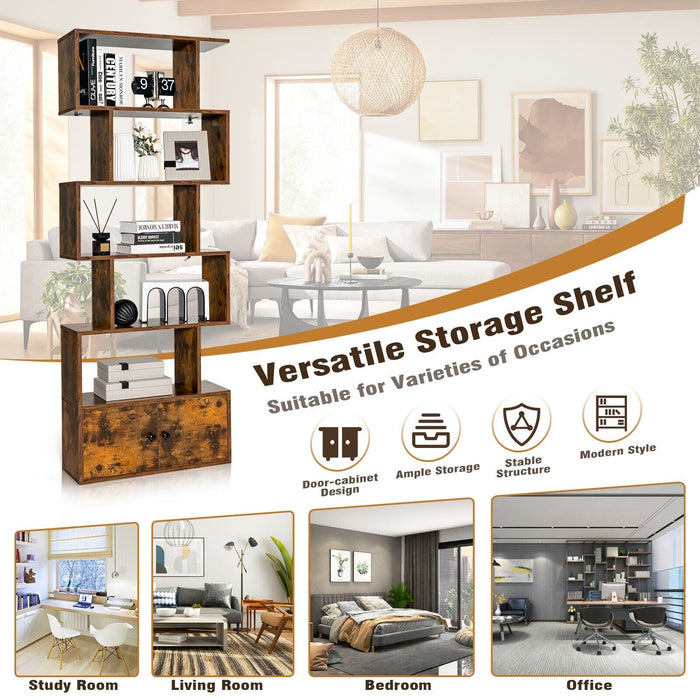 Introducing a versatile furnishing piece that marries form with function, our 6-tier bookshelf is tailor-made for book lovers and decor enthusiasts alike. It's an ideal solution for showcasing your treasured literature, vibrant greenery, prized collectables, and much more. The inclusion of a discreet lower cabinet with double doors provides not only an aesthetic appeal but a practical enhancement to the shelf's stability and your organizational possibilities.