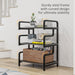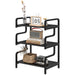 With a sleek three-tier structure, this shelving unit presents abundant space for displaying books, vases, photo frames, and more. Its versatile nature allows it to blend seamlessly into various rooms, functioning as a striking bookshelf, a chic living room display, or a convenient bathroom organizer.