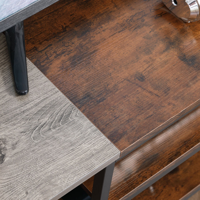The robust steel frame fortifies the structure of this entertainment center, promising unwavering support for your electronic treasures. Its well-engineered design features under-frame clearance, simplifying maintenance and cleaning routines without compromising on stability.