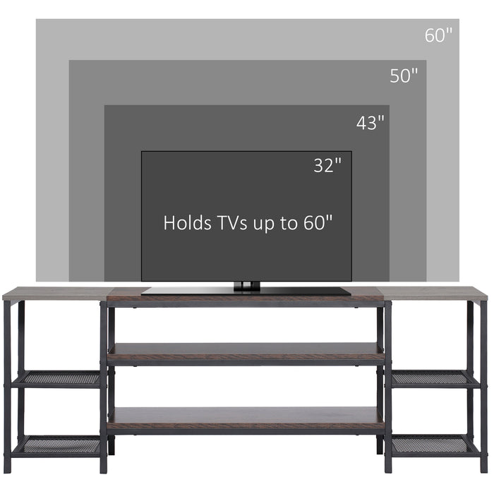 Whether you boast an impressive collection of gaming consoles or an array of digital devices, our TV stand's six diverse open shelves cater to all your storage requirements. The expansive flat surface accommodates TVs up to 60 inches, ensuring that your viewing experiences are both comfortable and stylish.