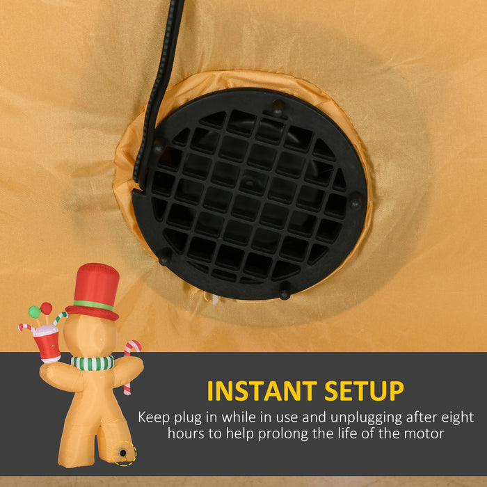 When dusk falls and night blankets the sky, our Gingerbread Man truly comes to life. Equipped with four LED lights nestled within, this inflatable casts a warm and inviting glow that can be seen from afar, ensuring your home is the beacon of holiday cheer in the neighborhood.