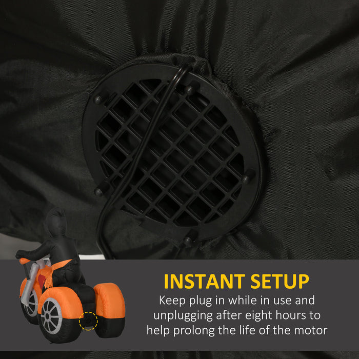 Our haunted motorcyclist measures a noticeable 146H x 178W x 71D cm, with a generous 3-meter power cable for flexible placement. The interior LEDs are low consumption at 0.25 W, ensuring that while they're bright, they're also efficient. And with the included fan, assembly is a breeze.