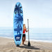 Whether you're paddling out to surf, setting the scene for a tranquil yoga practice, or embarking on a fishing expedition, our paddle board is up for the challenge. The triple-fin configuration enhances directional stability and improves speed, while the hefty weight capacity and ultra-thick design contribute to an exceptionally stable platform.