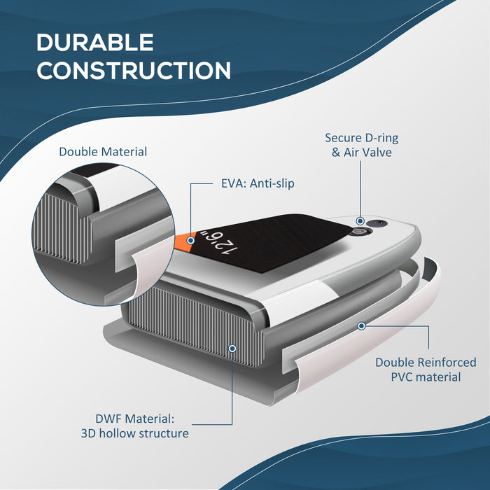 A striking fusion of white and orange not only ensures visibility on the water but also accentuates this paddleboard with a stylish edge. Made from durable materials like PVC and EVA, it is destined for countless expeditions and endless enjoyment.
