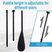 The fusion of flexibility and functionality in our SUP set assures an excellent ride on the water. With an adjustable paddle ranging from 1.7 to 2.15 meters, it comfortably accommodates adventurers standing between 5.1 and 6.4 feet tall—tailoring to a broad range of users with ease.