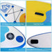 Adorned with a sleek white and blue design, this SUP not only performs exceptionally but looks great on the water. While compact when folded—measuring just 80L x 36W x 18H cm—this board expands to its full glory when inflated, offering a sizable platform for all your aquatic endeavors. Please always refer to the manual included in the package for detailed instructions and care guidance to enhance your experience.