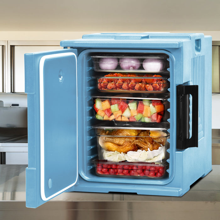 No event is too big or small for our insulated food carrier, boasting a generous 95-quart capacity. This equates to a 90-liter interior space, giving you the flexibility to carry various pan sizes and configurations: fit up to six full-size pans if they're relatively shallow, three if they're deeper, or even mix and match with half-size pans. The versatility continues with a robust, user-friendly design that features a pair of handles for easy transportation, a securing latch to keep contents safe, and a stackable build for effortless, space-efficient storage.
