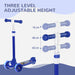 Kids 3 Wheel Scooter - Adjustable Height & LED Light-Up Wheels, TPE Handlebar for Comfort - Perfect Ride for Children Aged 2-6, Blue