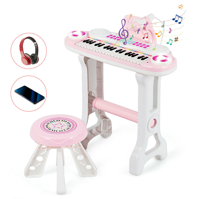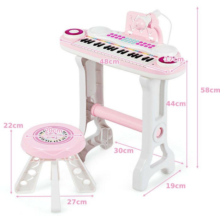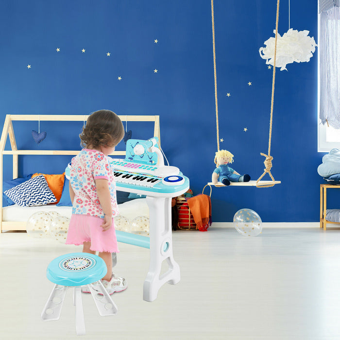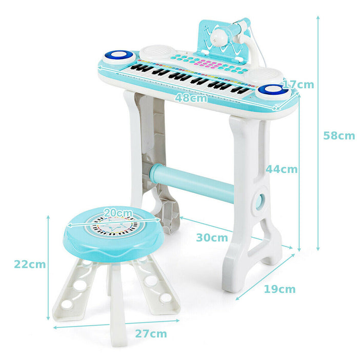 Kid's 37-Key Electronic Keyboard - Toy with Stool and Microphone in Blue - Ideal for Developing Musical Skills and Playtime Fun
