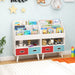 Spark creativity and organization with our kids bookshelf! Featuring a 3-tier bookshelf, open compartment, and 2 fabric drawers, this book and toy organizer offers ample space for your child’s belongings. Safety is a top priority, with rounded corners and 2 anti-toppling devices to securely attach it to the wall. Moreover, the children’s bookcase is crafted from premium wooden materials with sturdy support legs to ensure stability and durability. Its modern design adds a stylish touch to any kids’ room, nursery, playroom, or classroom. Not only does it maintain tidy play areas, but it also promotes reading habits and organization from a young age, making the bookshelf an ideal gift for kids over 3 years old. Versatile Storage Solution: This kids bookshelf meets different organizational needs with its 3-tier bookshelf, an open compartment, and 2 foldable fabric drawers. These storage areas provide an excellent solution for organizing and displaying children’s books, toys, clothes, and knickknacks. Kids’ Safety Is Emphasized: Designed with kids’ safety in mind, this bookcase toy organizer features rounded corners and a splinter-free surface. It also comes with dual anti-toppling devices to securely anchor the bookrack to the wall. Besides, the reinforced back buckles make this kids bookcase more stable. Designed for Reliability: Made with premium wooden materials and supported by solid support legs, the children’s book display rack ensures lasting reliability and stability. The elevated design shields books from falling off, while the child-friendly height allows easy access to toddlers’ books and toys. Ideal Gift for Little Readers: This book and toy organizer not only keeps play areas tidy but also encourages reading habits and organization from an early age, making it a perfect gift for kids aged 3 years old and above. Modern Style and Wide Use: In addition to its functionality, this book display shelf boasts a modern design that complements any children’s room, nursery, playroom, or classroom. Its sleek design seamlessly blends with a variety of interior styles.