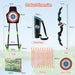 This kids archery set comes in a gift box, and it consists of 2 bows, 20 arrows, 2 quivers,a spare sticker and a target. The arrows are built with soft suction cups for security. And the bows are designed with built-in LED lights for more fun while playing. You can play the arrow target indoors or outdoors, and the target is available for 2 usage ways: standing or hanging. Through thrilling games, kids are able to not only learn archery skills but also enhance body strength. 2 Pack Kids Bow and Arrow Set: This archery toy set comes in a gift box, and the whole set includes 2 bows, 20 arrows, 2 quivers ,a spare sticker and an arrow target. Suitable age: 3+ years old. Exercise and Learning Through Games: This bow and arrow set will be a perfect gift for kids, which helps to improve aiming and archery skills, hand-eye coordination, focus and concentration and parent-child interaction. It also encourages kids to spend less screen time at home. LED Lighting Bows: The ergonomic handgrip is integrated with the light switch, which is easy to operate for kids. Plus, the adjustable bowstring meets the needs of different kids. 2 AAA batteries are needed for each LED lighted bow (not included). Suitable for Indoor and Outdoor Fun: The lightweight carry-on arrow case is convenient to transport and store arrows, which is designed with an adjustable strap to fit different kids. The arrow target features 2 usage ways (standing target and hanging target), and both of them are suitable for playing indoors and outdoors. Safe and Durable Materials: This kids archery set is made of non-toxic and odorless materials, which is safe for kids. The arrow suction cups made of soft material feature strong suction. And the arrow shafts are not easy to break, and they are crafted with arrow tail holders.