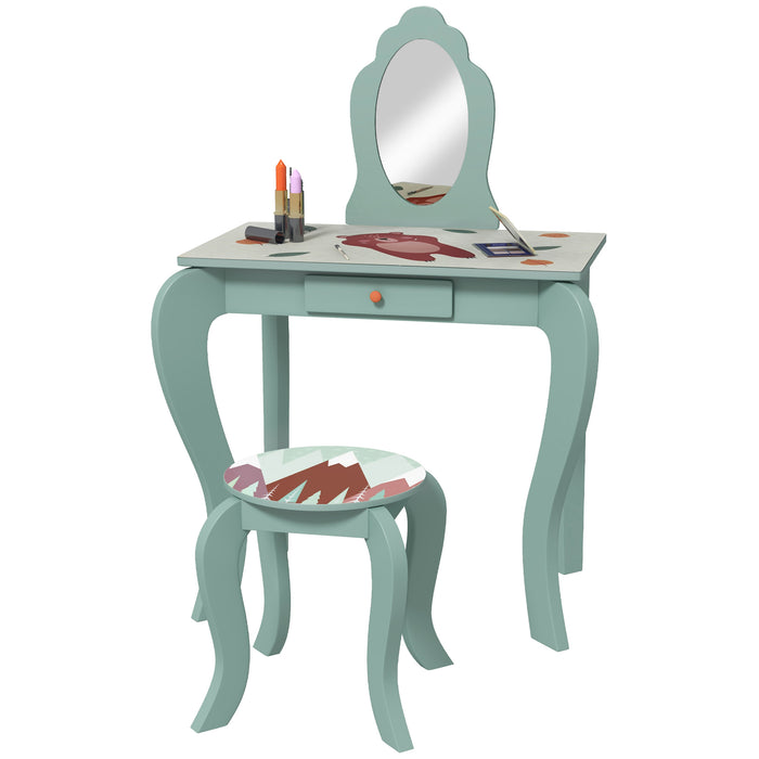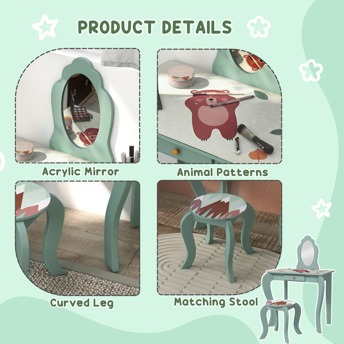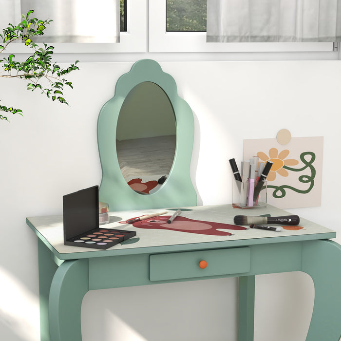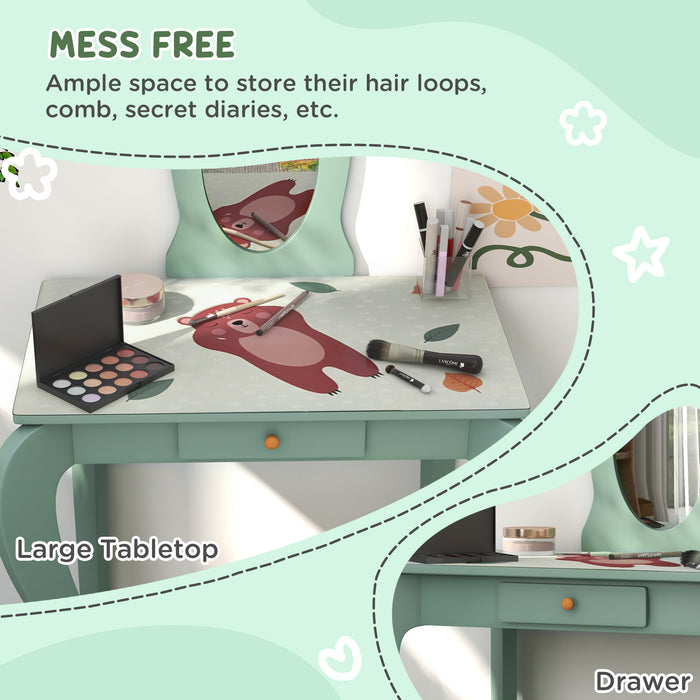 Dressed in a cheerful color palette, our vanity set is adorned with a whimsical animal motif that brings a burst of energy and charm to any child's bedroom or play area. Its vibrant presence stands out, making it a coveted piece of furniture that doubles up as room decor.