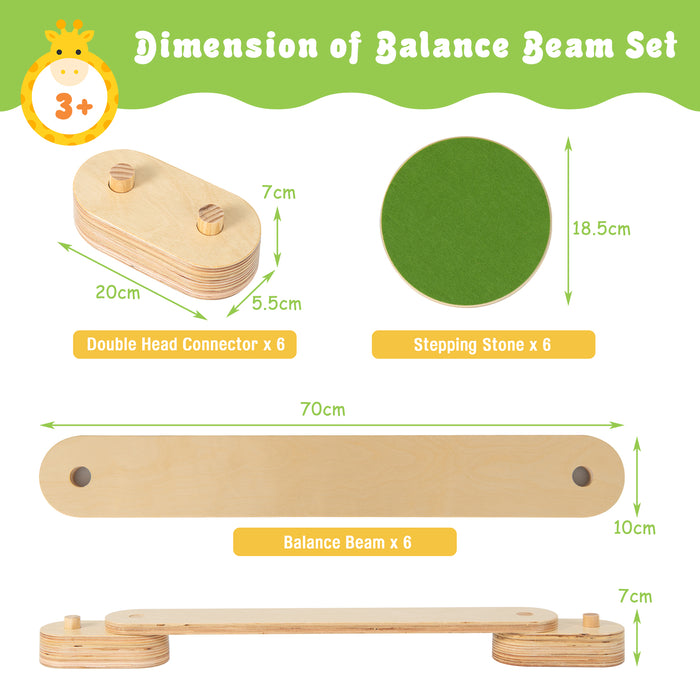 Containing an array of engaging components—which includes 6 modifiable balance beams, 6 interlocking wooden connectors, and 6 tactile stepping stones—this holistic set provides an abundance of playing options to keep young explorers entertained. Ideal for solo or group activities, it fosters friendships and collaboration among peers.
