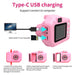 Equipped with a powerful 1000mAh battery, the camera charges within 1.5-2 hours. Once fully charged, it can work for 3-3.5 hours for taking photos and 1 hour for printing. It supports TF cards up to 64GB (32GB is included) and requires a charging voltage and current of DC 5V/2A.
