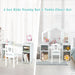 This vanity set includes a large tri-fold mirror and matching chair for a complete grooming experience. Four large storage shelves can hold your child's hair ties, nail polish, makeup or toys. And the wide tabletop allows your child to be creative in any imaginative way. In addition, the unbreakable acrylic mirror and rounded corners ensure the safety of your child. For the little angel in your family, this is definitely the best gift. Fully Accessorized Kids Vanity: The vanity is equipped with a high definition tri-fold mirror that can clearly reflect child's face. The matching chair with backrest allows the child to be in the most comfortable position. When the child is finished with makeup, the items can be stored on the storage shelves on both sides to keep the room tidy. Safe Design in Details: Unlike other products, the acrylic tri-fold mirror will not break easily and will not cause splinters to the point of possibly hurting your little angel. The table top is designed with safe rounded corners to avoid possible accidental injuries. 2 in 1 Design: The tri-fold mirror that comes with the table is removable. Therefore, in addition to being a dressing table for the little princess, it can also be turned into a playing table or a writing desk at any time. Whether in the living room, children's room or playroom, this multifunctional kids' table and stool set is a very practical piece of furniture. Quality Materials and Stable Construction: The vanity is constructed of strong and durable MDF to provide long and reliable service. This vanity set is non-toxic and odourless. More, the chair is structurally stable and can provide a weight capacity of up to 50kg. Easy Assembly and Easy Clean: The children's dressing table set comes with detailed instructions and all the required accessories. This can greatly help you save the time and experience needed for installation. The surface of the furniture is smooth and waterproof for easy cleaning. Without a doubt, this is the most awaited gift for the little angel in your family.