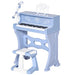 The piano and stool boast a durable design crafted from high-quality ABS material in a vibrant blue that captures the imagination. There’s no need to worry about energy waste; the piano enters a power-saving sleep mode after a period of inactivity. The stool is sturdy, supporting up to 30kg, ensuring a safe and secure experience for your child.