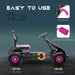 Manipulating the kart is a breeze with its user-friendly features. Equipped with a responsive steering wheel and handbrake, young drivers can easily navigate their way, whether cruising forward, rolling in reverse, or needing to stop quickly and safely.