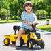 Experience the thrill of farm life with the licensed caterpillar ride-on tractor. The beep beep horn and dual sound buttons allow children to drive with fun sounds. Bright LED lights are controlled by the engine sound button. Please note that the sliding tractor with trailer requires 2 x AA batteries (not included). A detachable trailer adds versatility, perfect for transporting treasures. In addition, the trailer enables kids to engage in joyful sand play. Beach tools like a rake and shovel enhance play while promoting fine motor skills. Safety is a priority with a limited steering angle and anti-tipping design, helping kids to navigate the road with precision and control. The comfortable seat and reliable wheels ensure a smooth ride on any surface. More premium details await your discovery. Realistic Driving Experience: The licensed caterpillar ride on tractor boasts a beep beep horn that brings playtime to life. Thanks to dual sound buttons, each press immerses kids in the symphony of farm life, while the engine sound button also controls the LED lights. 2 x AA batteries are required but not included. Versatile Detachable Trailer: Enhance your child’s playtime with the removable cargo trailer, ingeniously designed to hold everything from blocks to snacks. This feature is perfect for little adventurers who love to transport their treasures, making sand or snow games easier and more fun than ever. Beach Tools Included: The foot-to-floor sliding tractor boasts a beach rake and shovel, perfect for little builders aged 1.5 to 3 years old. These tools enhance sand play, fostering fine motor skills and creative construction. Conveniently, both tools can be stored securely on the storage bracket when not in use. Safety First Design: Prioritize your child’s safety with the sit and scoot toy car, which features a limited steering angle of 32° to prevent sharp turns, while boasting a back anti-tipping design for stability. With EN71 certificated, the ride on tractor with trailer meets the high standards of safety. Comfort and Stability on Any Surface: The no power ride on car is designed with a comfortable seat, allowing kids to explore the outdoors with ease. Besides, the enduring wheels ensure a smooth ride across various floor types including rubber, hardwood, cement, etc.