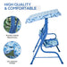 Featuring a lively and engaging pattern on the seat, this swing set instantly becomes their go-to haven under the sun or amidst a light breeze. The adjustable canopy is ingeniously crafted to move at different angles, providing ample protection from the sun's rays and sheltering your little ones from the elements.