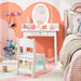 Elegant Two-Tone Illuminated Mirror: At the heart of our kids vanity set rests a captivating 2-color LED lighted mirror. Simply by pressing a button, children can switch between warm and white light, invoking the magic of a professional makeup studio right in their own space.